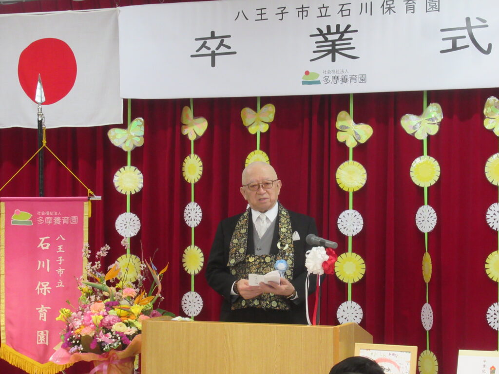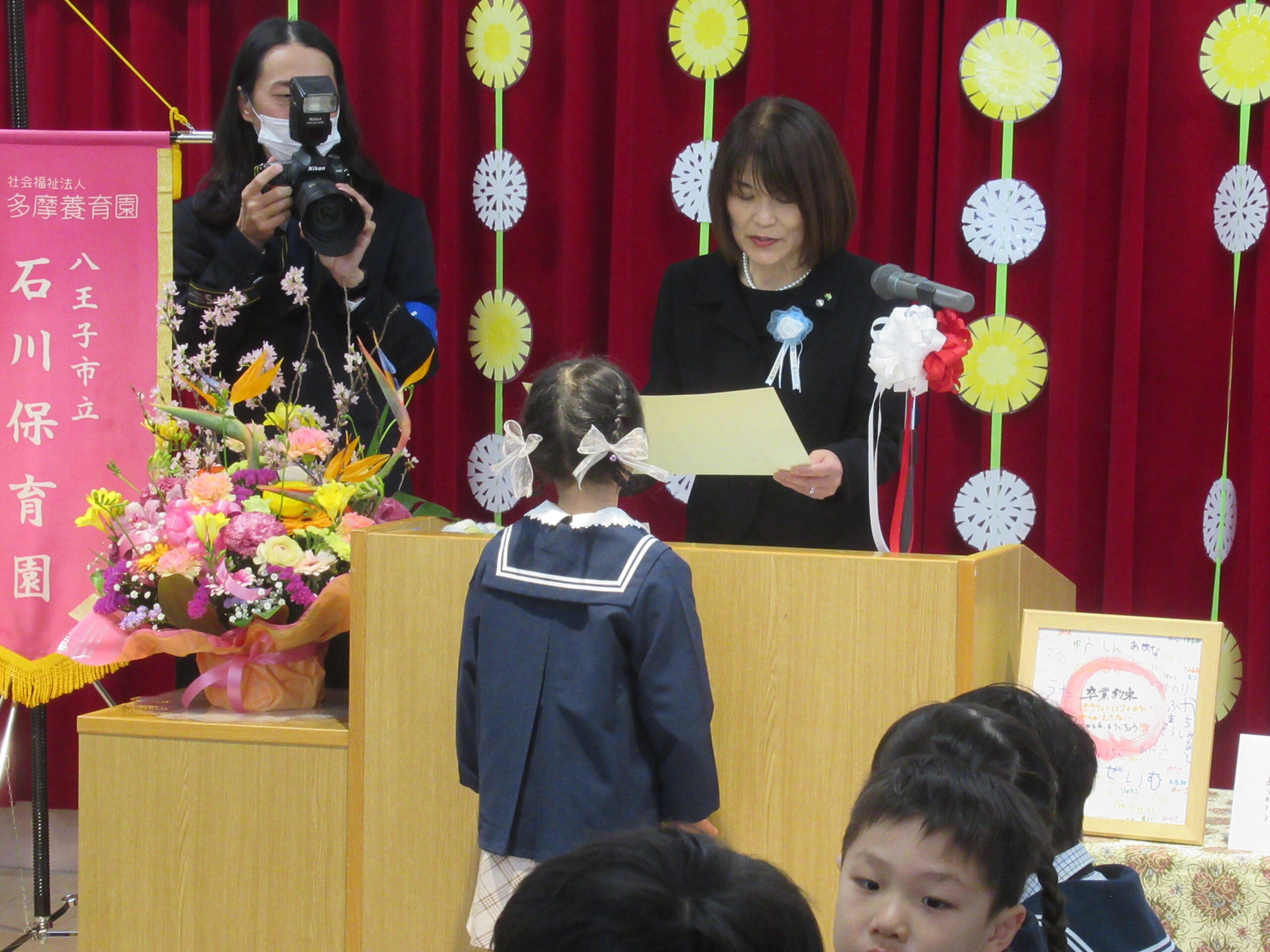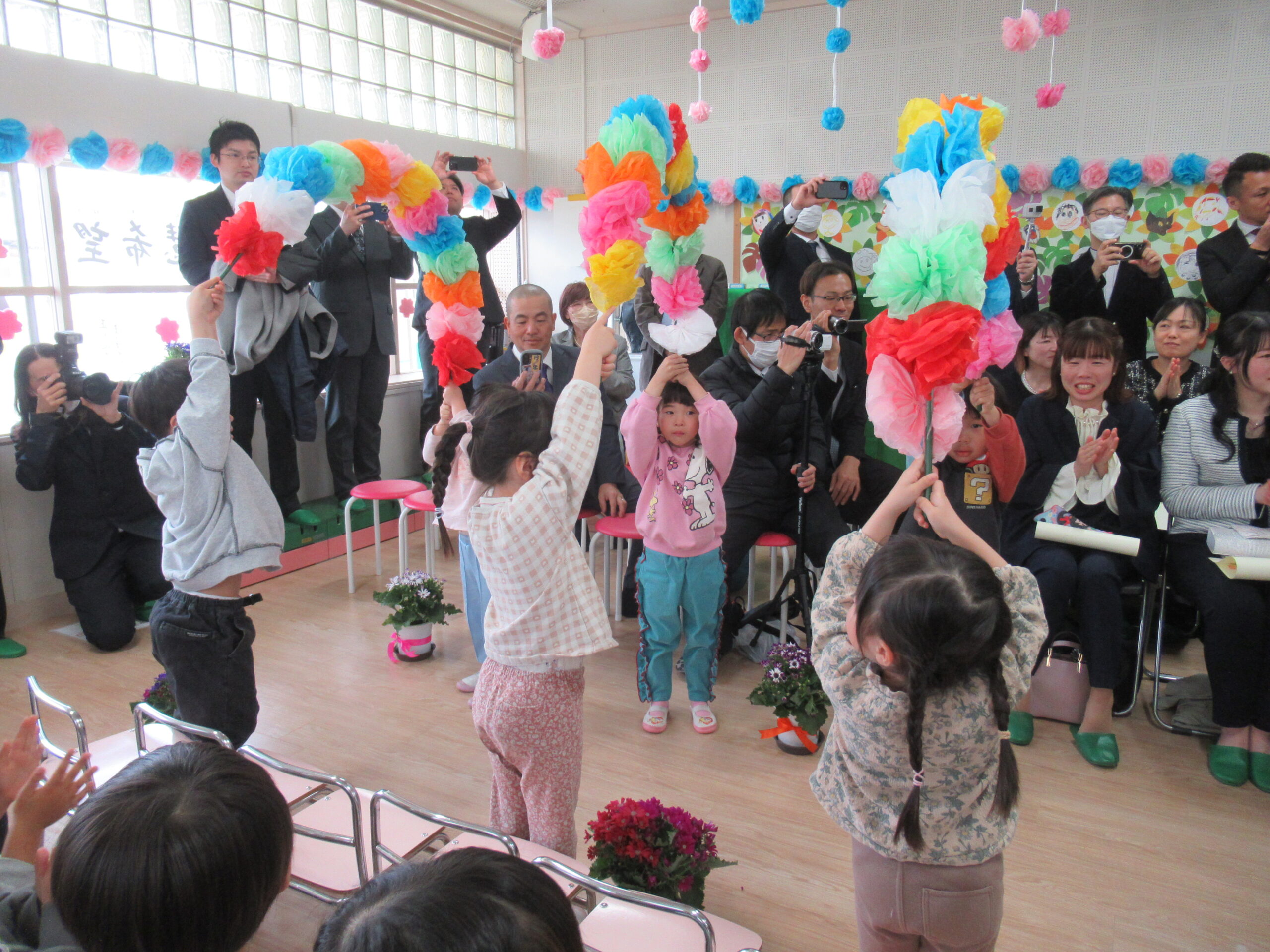 今日は卒業式がありました。入場前は友だちと着てきた洋服を見せあいながら、式が始まるのを待ち、入場すると保護者、在園児が温かい拍手で迎えてくれたことで、肩をすくめて恥ずかしそうにしてました。20人全員証書授与を受け取り、大きな声で小学生での目標を発表することができました。退場では、在園児が花のアーチを作り、その中を笑顔で通っていました。ご卒業おめでとうございます。