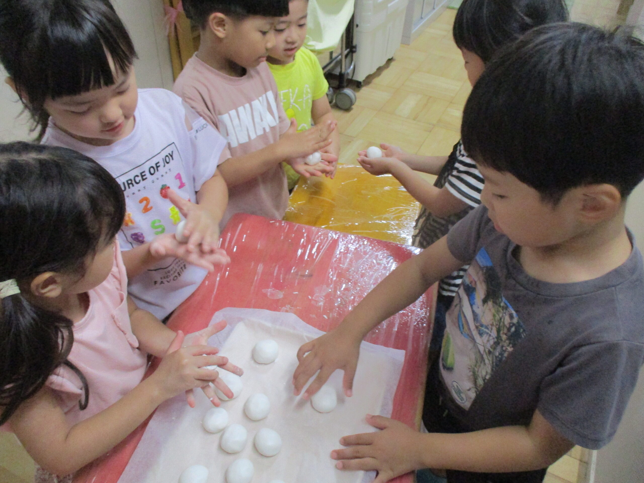 幼児組(3~5歳児)が作ったお団子をお供えしました。