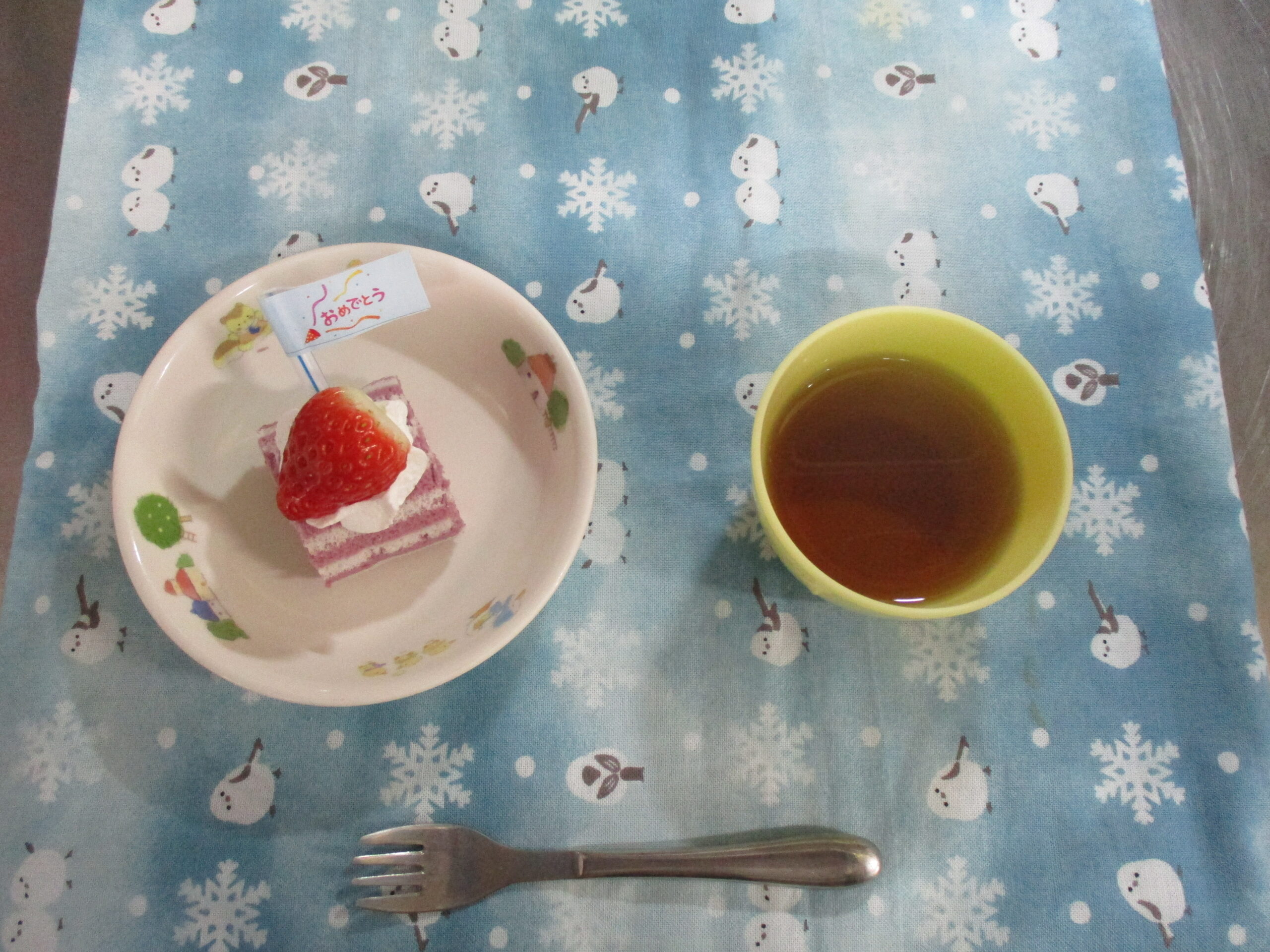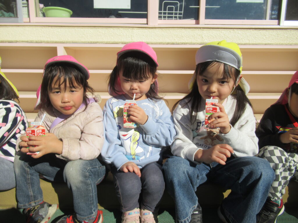 6日に行われたおゆうぎ会の頑張りを労って、みんなで乾杯してりんごジュースを飲みました。