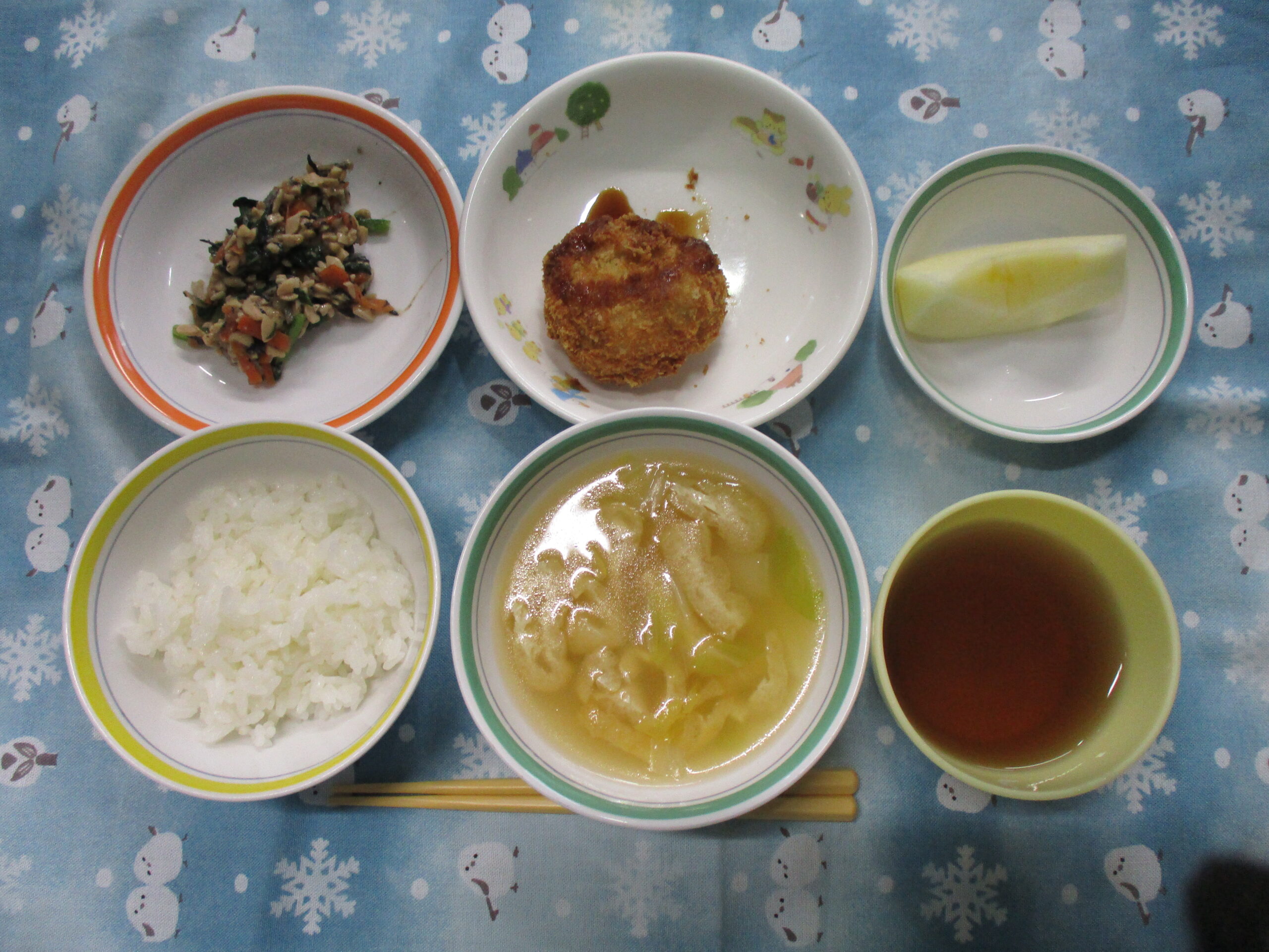テーブルに飾ってあるメニュー表と給食を見比べながら、楽しそうに食べていました。