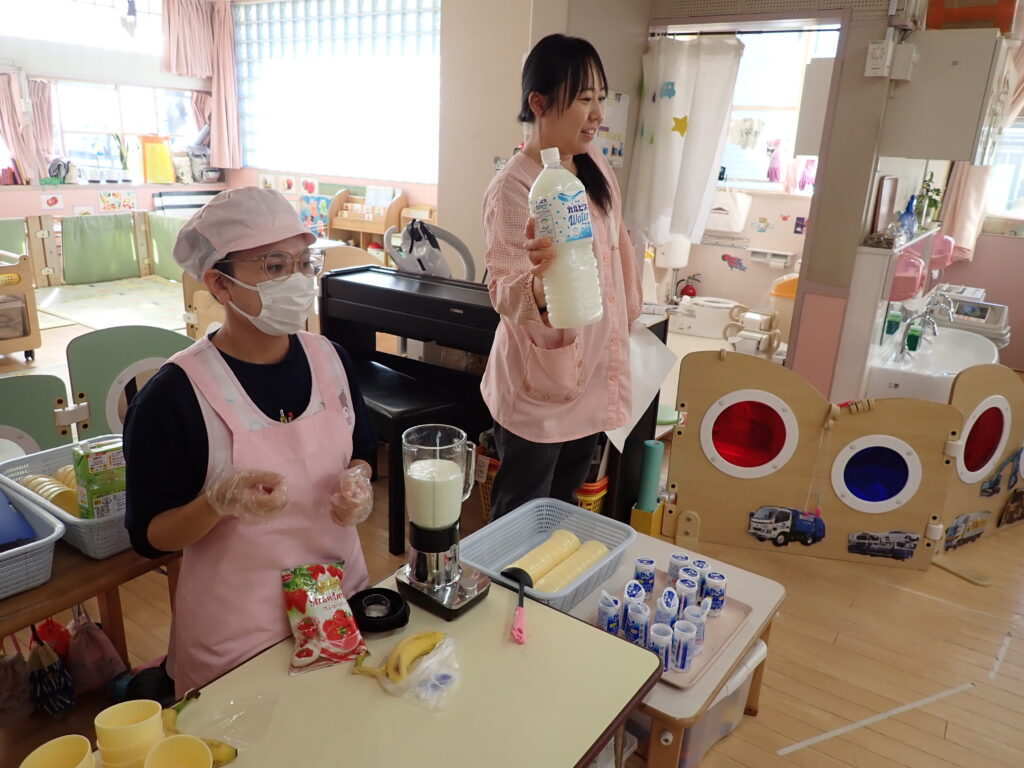 おゆうぎ会のお疲れ様会をかねて、ミックスジュース作りを行い、自分好みのジュースで乾杯しました。